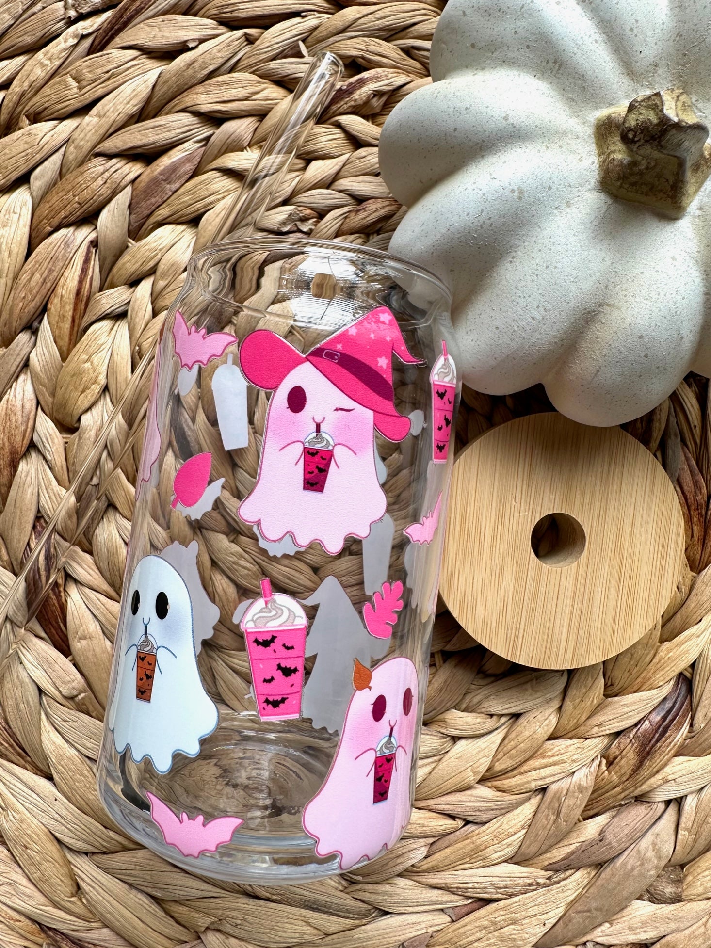 Pink iced coffee ghost glass